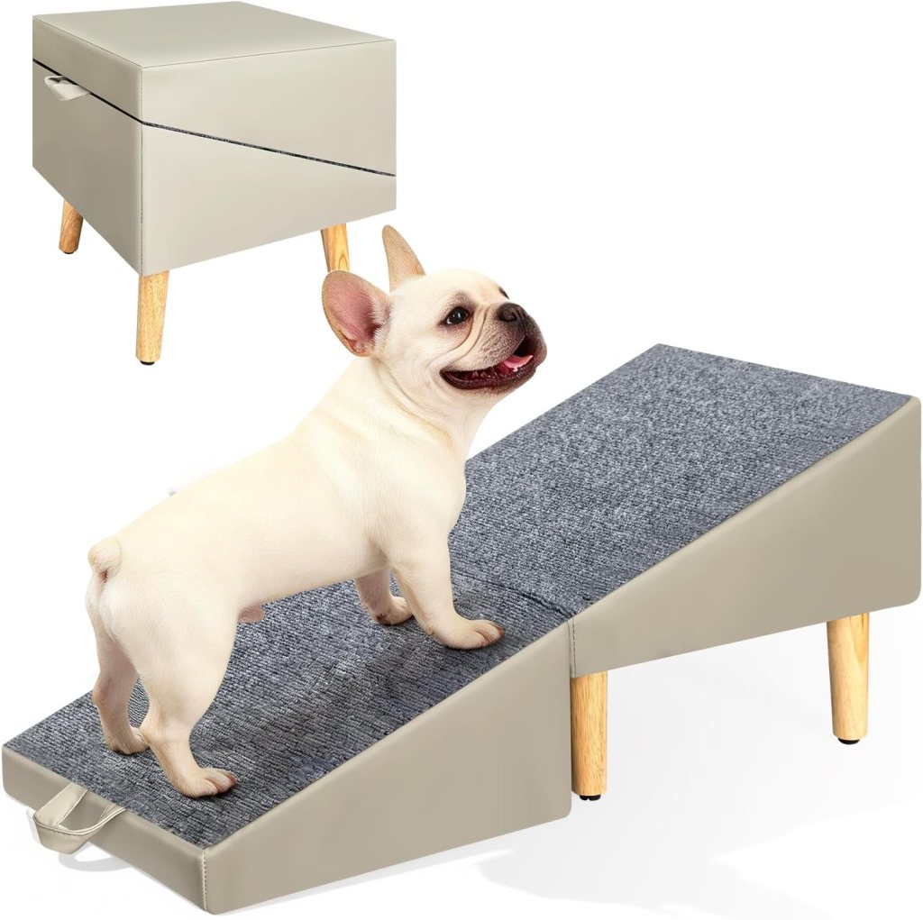 If you have a small or older dog who struggles to jump up onto the couch or into the car, this ramp is going to feel like a total game changer for you. I got one for my little guy after he started hesitating before jumping and watching him confidently trot up it on his own now genuinely makes my heart so happy. It folds up nice and compact which means it does not take over my entire living space, which I really appreciate.
